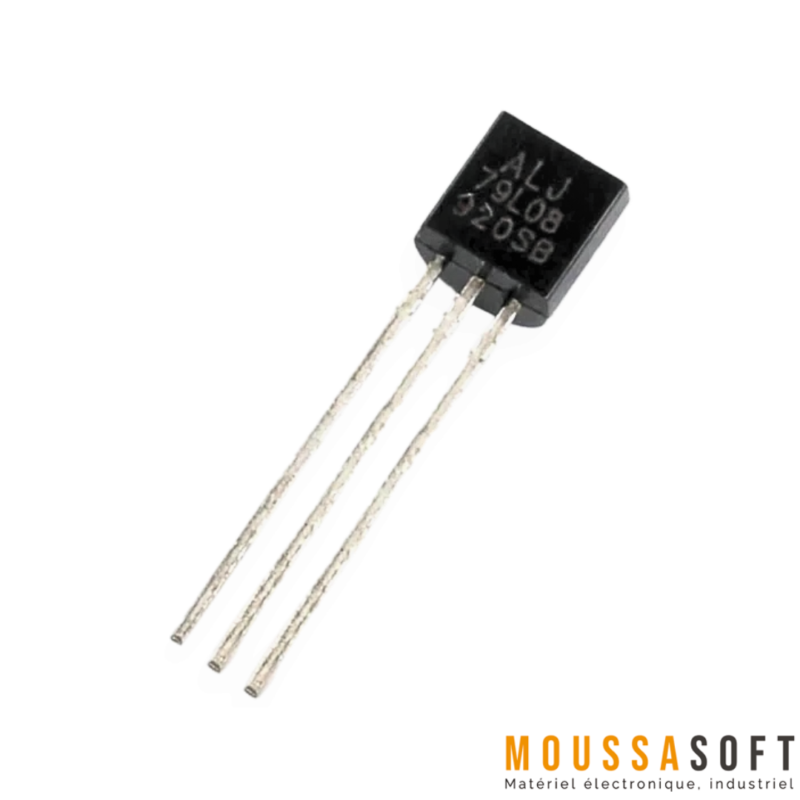 Régulateur de Tension To-92 79L08 -8V 0.1A est un circuit intégré régulateur de tension négative à 3 broches, permet d’avoir une tension de sortie fixe de -8V. Il fait partie de la série des régulateurs 79Lxx, spécifiquement utiliser pour la régulation sur carte et une large gamme d’autres applications nécessitant une tension négative régulée.