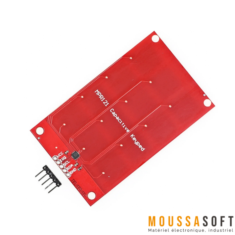 Clavier Tactile Capacitif MPR121  fonctionne en mesurant la capacité de douze points d’électrodes. Lorsqu’un objet s’approche du connecteur d’électrode, la capacité mesurée change, Cela signale au MPR121 que quelque chose a touché un “bouton”.