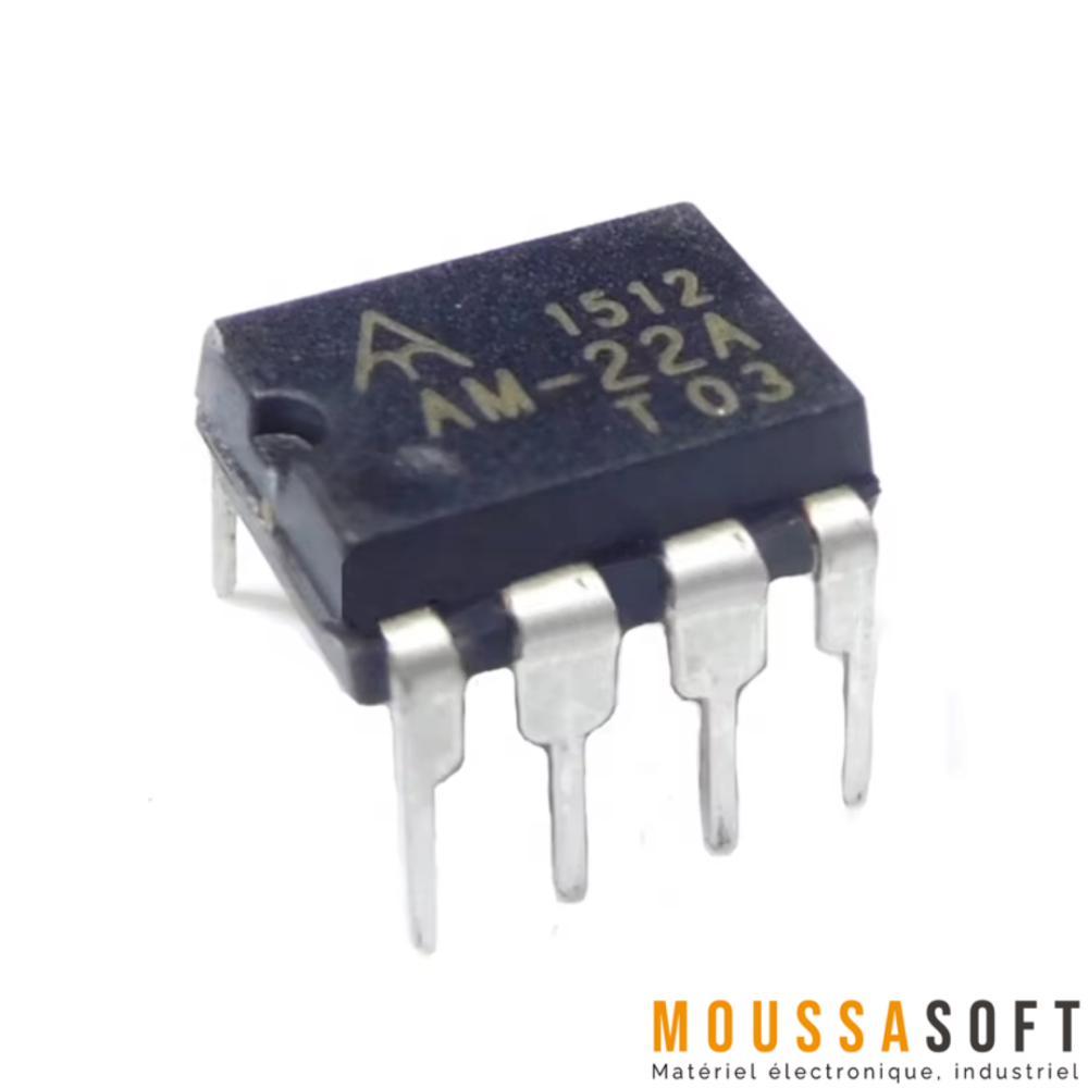 Le AM22A (AM-22A) est un circuit intégré de contrôle d’alimentation à découpage (Switch Mode Power Supply, SMPS) à faible consommation conçu pour des applications variées telles que les adaptateurs d’alimentation, les alimentations LED, les plaques à induction, les lecteurs Tune, les DVD et autres petits appareils électroménagers.