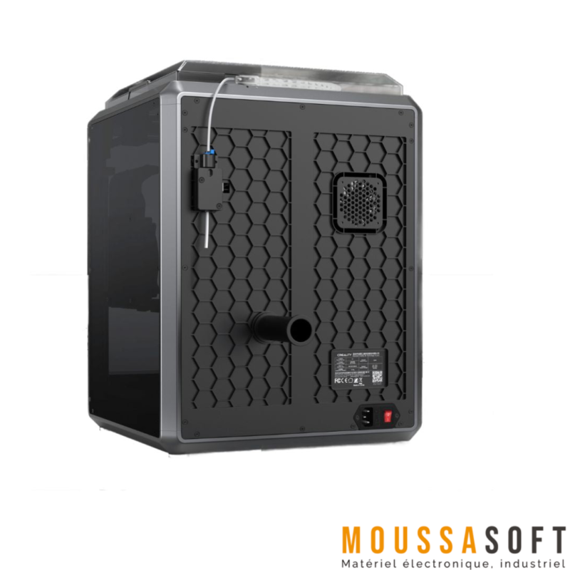 Pour maintenir une température optimale et prévenir la déformation des pièces, Creality K1 est dotée de deux ventilateurs. Un ventilateur principal est intégré à la tête d’impression, tandis qu’un ventilateur auxiliaire de 18 W dans la chambre d’impression assure un refroidissement efficace.