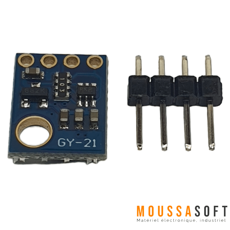Le capteur GY-21 utilise un élément capteur capacitif pour mesurer l’humidité relative, tandis que la température est mesurée à l’aide d’un capteur de bande interdite.