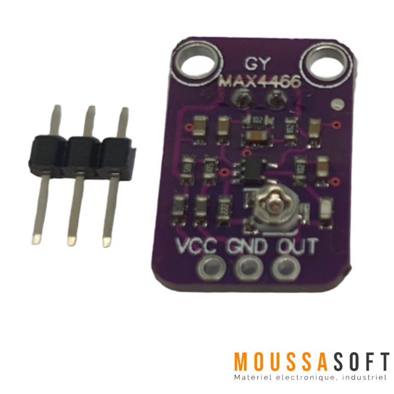 Le module MAX4466 Microphone dispose de trois broches: OUT, VCC et GND.