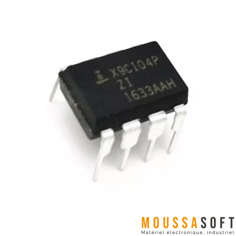 - Utilisation dans les systèmes automatisés : Grâce à sa nature programmable, le X9C104P est idéal pour les systèmes automatisés où des réglages de résistance en temps réel sont nécessaires sans intervention humaine.